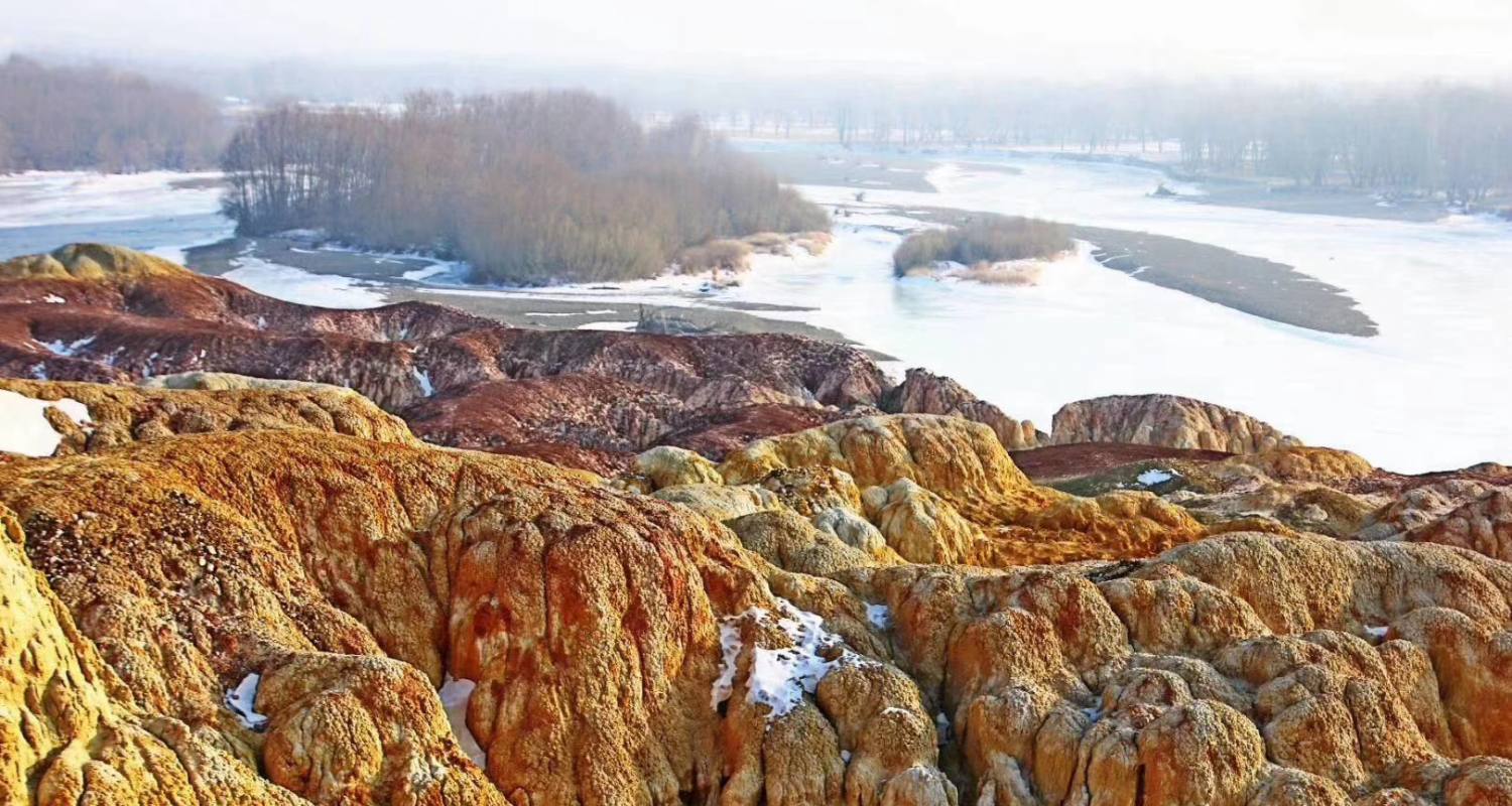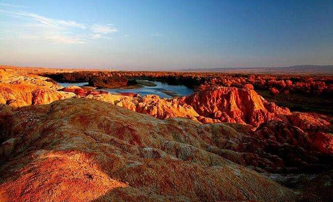 布尔津的五彩滩,位于布尔津县城以北约24公里处,是前往哈巴河县与喀纳斯的必经之路。所以也是前往喀纳斯的游客强烈推荐参观的景点。它毗邻碧波荡漾的额尔齐斯河,与对岸葱郁青翠的河谷风光遥相辉映,可谓“一河隔两岸,自有两重天”。河岸岩层抗风化能力强弱不一,轮廓便会参差不齐,而岩石含有矿物质的不同,又幻化出种种异彩,因此得名“五彩滩”。
