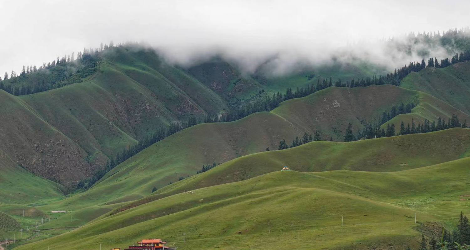 传说中卓尔山与祁连的镇山之山--阿咪东索(牛心山)是一对情深意重的情侣,默默守候在八宝河两岸,共同护佑着祁连的山山水水。